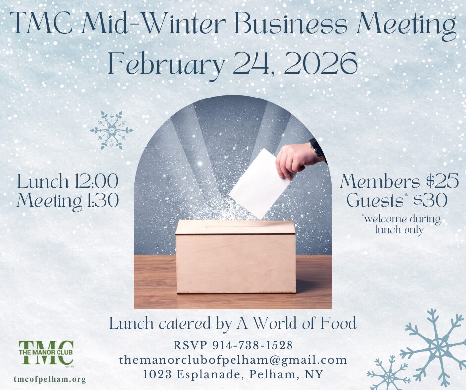 RSVP 914-738-1528 or email themanorclubofpelham@gmail.com
